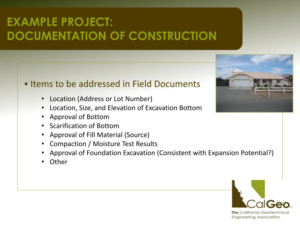 “The most comprehensive standard for the practice of residential geotechnical evaluations may be ”Residential Geotechnical Evaluation for Ownership Transfer: A Risk Assessment Guideline,” Association of Engineering Geologists Special Publication Number 25, by Harry S. Audell, 2013. In this publication, the qualifications of a practitioner are described as “Any person possessing a state issued license as a professional geologist or professional engineer is qualified to perform the RGE. However it is typically performed by an engineering geologist or geotechnical engineer.” Although the statement in AEG SP25 regarding the qualifications of the practitioner is true, it is suggested that the description of qualifications of practitioners of RGE’s be expanded to include the following: 1. Have extensive knowledge of the geologic conditions in the geographic area, 2. Have knowledge of the history of the building design and performance criteria, local building code changes, and standard of practice, 3. Have knowledge of geologic processes that are capable of causing damage, and 4. Have an open mind.